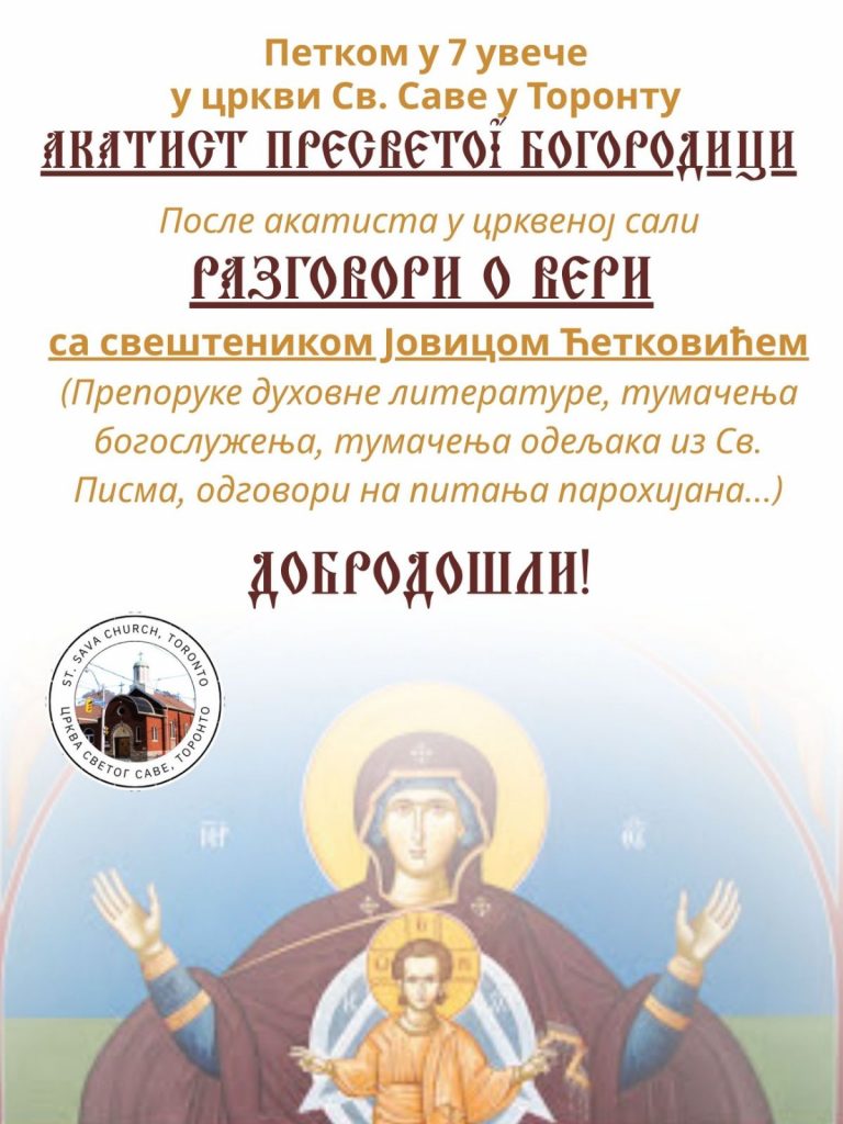 Богомољачко вече у цркви Светог Саве сваког уторка од 19-22 часова